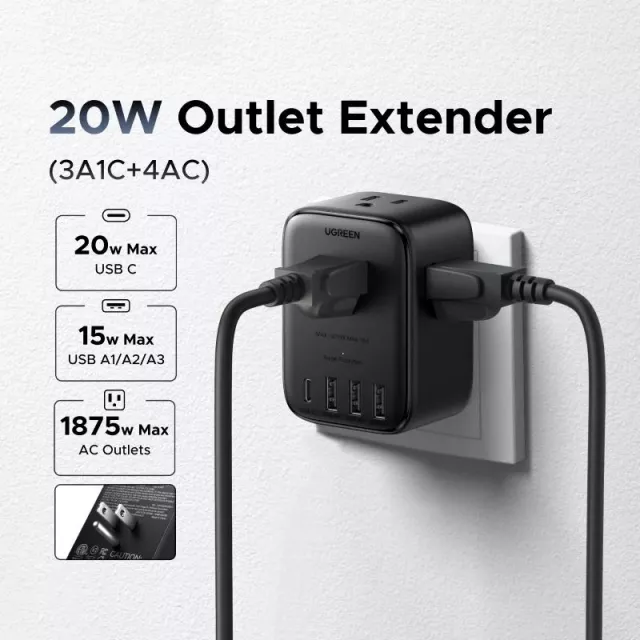 Looking for a reliable and compact solution to charge all your devices at once? The 20W Power Strip with 4 AC Outlets and 4 USB Ports is exactly what you need. Whether you’re at home, in the office, or traveling, this sleek power strip ensures your gadgets stay charged and powered up whenever you need them.