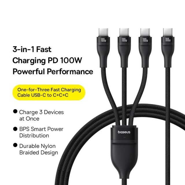 3-in-1 100W USB-C Fast Charging Cable for Phones and Laptops