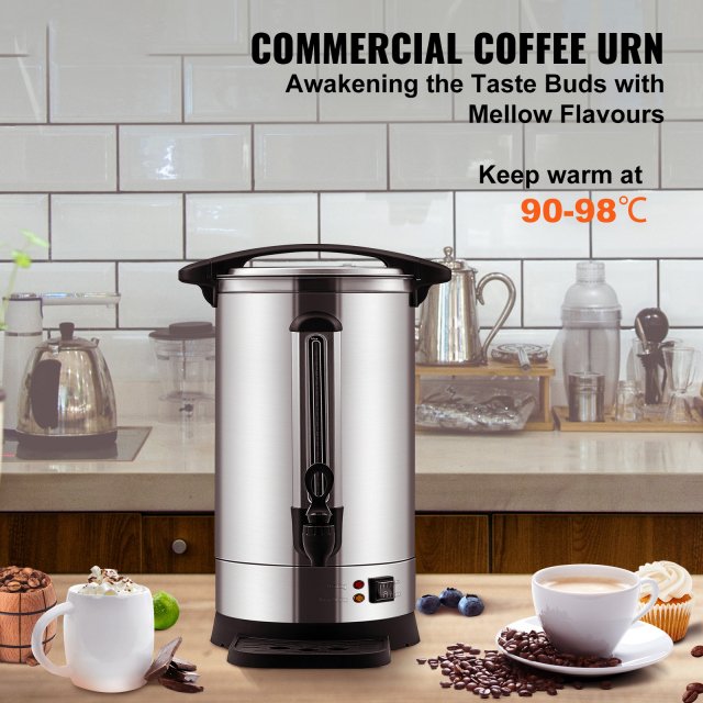 Crafted from premium food-grade stainless steel, this urn is built for heavy use while ensuring your drinks stay safe and delicious. The efficient heating system keeps beverages at the perfect serving temperature of 194–208°F, so every cup is as hot and flavorful as the first. A clear water-level gauge helps you monitor the fill easily, while a spill-proof lid, drip tray, and anti-scald handle make serving stress-free. Its smart spout design allows you to completely empty the urn without tilting, and the simple lever offers both single-cup or continuous filling options.