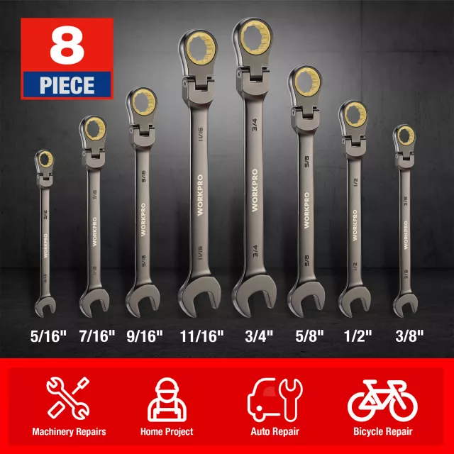 Upgrade Your Toolbox with Our 8-Piece Flex-Head Ratcheting Wrench Set!