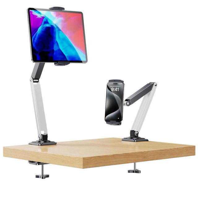 This stand is crafted with a sturdy metal body and a stable clamp mount that attaches easily to desks, headboards, nightstands, or countertops. Its flexible arm allows smooth adjustments without slipping or wobbling, so your device stays steady while you type, watch, or video chat. The secure grip keeps your phone or tablet in place without scratches, giving you both protection and peace of mind.