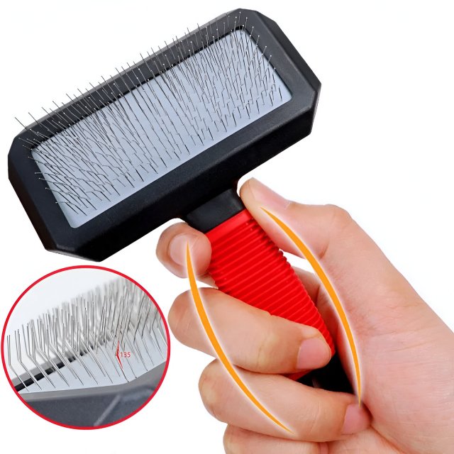 This grooming brush does more than just remove hair—it provides a soothing massage that pets love. The stainless steel teeth glide through fur without pulling, making grooming time a stress-free bonding moment. Use it after walks, playtime, or whenever your pet’s coat needs refreshing. Suitable for dogs and cats of all sizes, it’s an all-in-one solution for shedding, knot removal, and coat care.