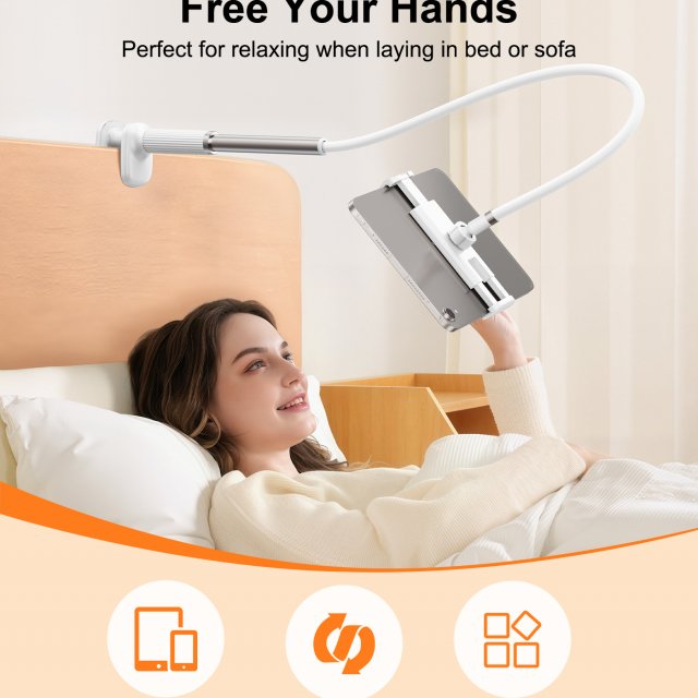 Unlike ordinary stands, this gooseneck holder combines extra length, flexibility, and a firm clamp to give you total control over your viewing angle. No more struggling with unstable stands or stacking pillows to get the right height. With its reliable build and ergonomic design, it’s the smart solution for hands-free living.