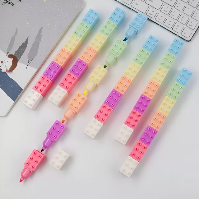 Pastel Building Block Highlighter Set – Fluorescent Marker Pens