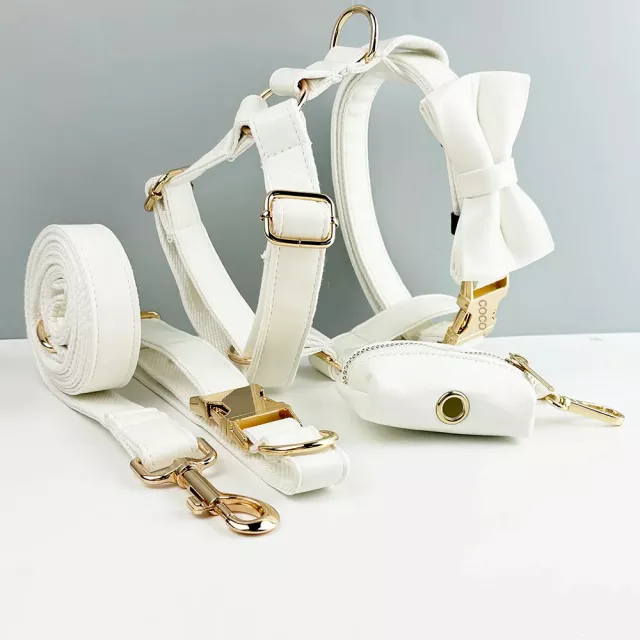 It’s a stylish and reliable way to keep your dog’s name and contact details visible, offering peace of mind if your pup ever wanders off. Alongside its luxurious leather design, the set also comes with options for accessories like bow ties and flowers, so you can add a touch of personality.